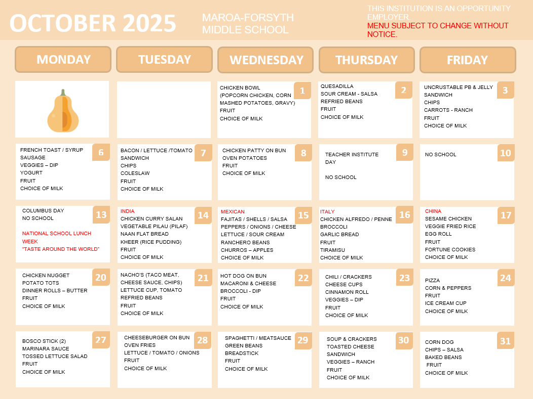 Middle School Menu